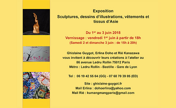 Exposition Sculptures, dessins d’illustrations, vêtements et tissues d’Asie
